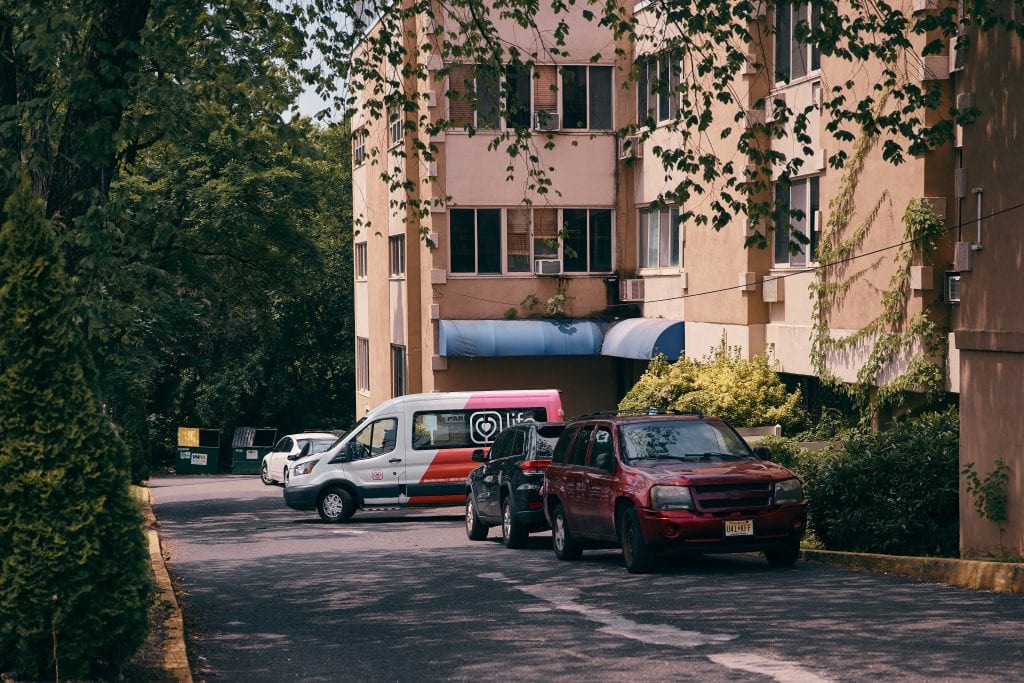 A life support van is parked at Belle Care Nursing and Rehab Center in Trenton on Thursday, June 26. Photo by Andres Kudacki for The Jersey Vindicator.