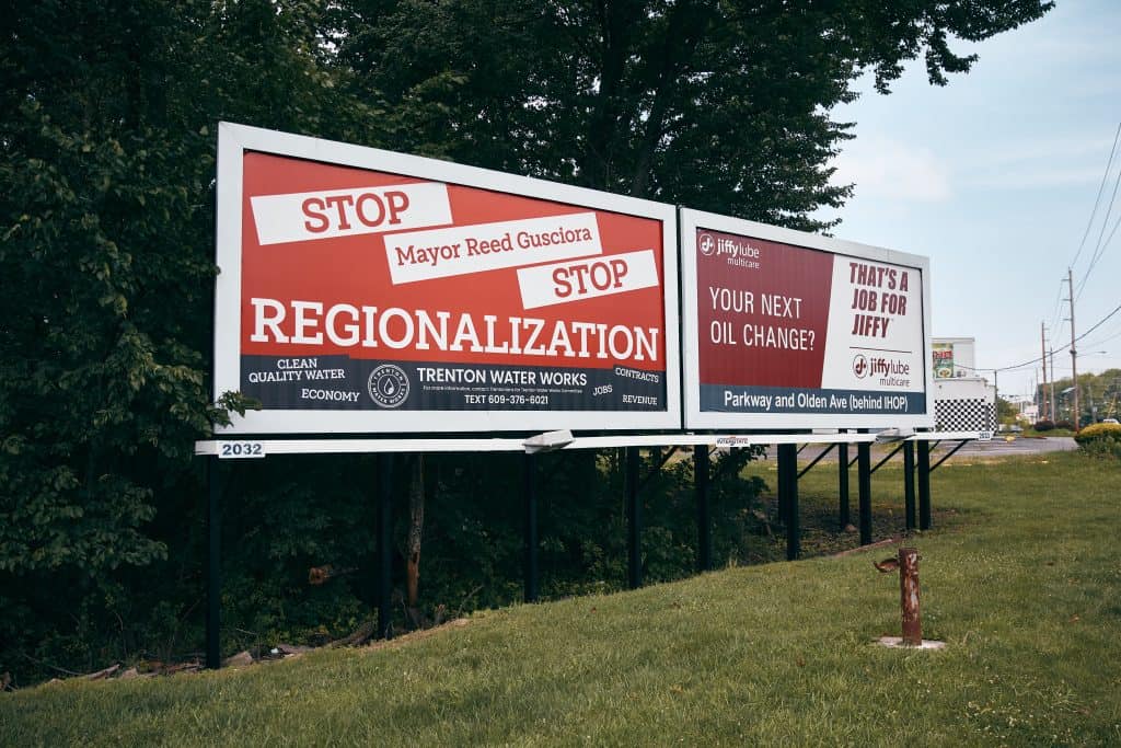 In recent weeks, the committee has raised billboards across the city urging residents to “Stop Regionalization” and “Stop Mayor Reed Gusciora,” who was elected in 2018 on a promise to reform the water agency. The committee is also holding public meetings to win new recruits in what organizers say is a fight against “outsiders” looking to seize control of a historic asset built for and by Trentonians.