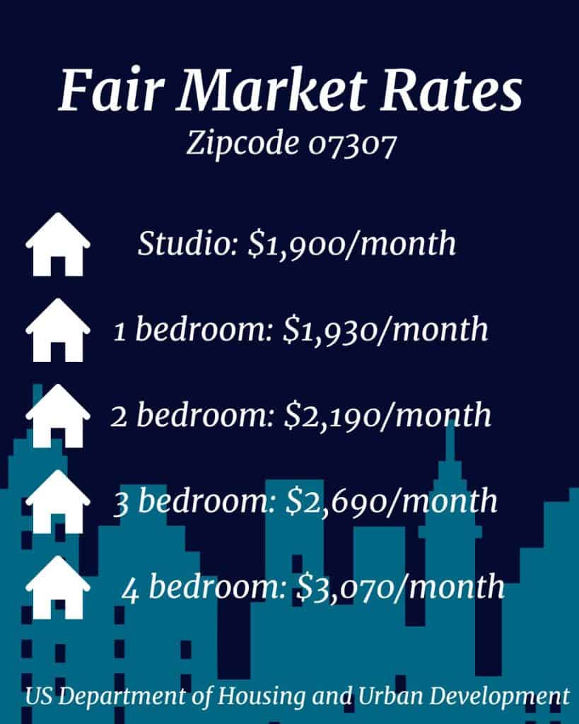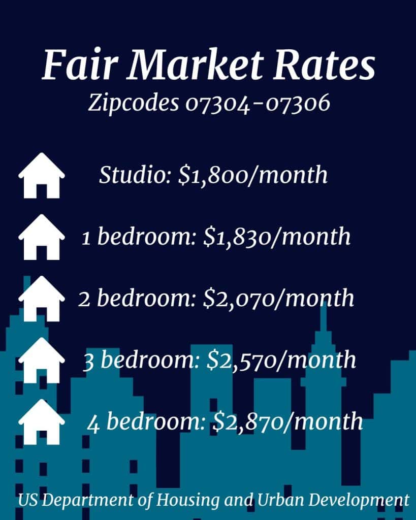 The numbers underscore the challenge: studio apartments average $2,400; one- and two-bedroom units, $2,500; three-bedrooms, $2,750; and four-bedrooms, $2,946. These rents far exceed the U.S. Department of Housing and Urban Development’s fair market rates in five Jersey City ZIP codes. In neighborhoods such as the Junction, Hill, Claremont, West Bergen, Greenville, Bergen-Lafayette, Journal Square, the Heights and McGinley Square, the fair rate starts at $1,800. In the West Side, Historic Downtown and Hackensack Riverfront, it begins at $1,900.