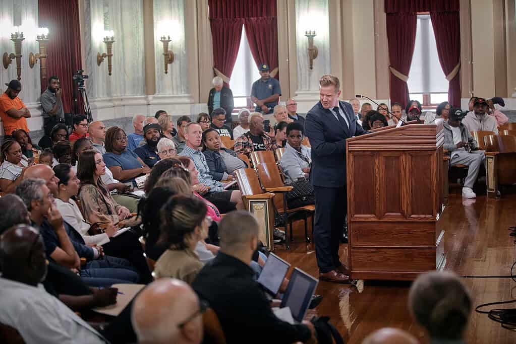 New Jersey’s top environmental official, Shawn LaTourette, appeared before the Trenton City Council on Monday night to plead for reform of the city’s water system, which experts say is teetering on collapse.