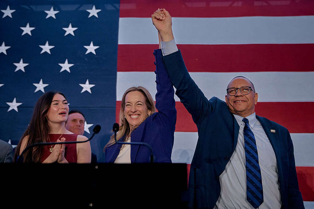 “Big Blue is back!” Jones hollered, his voice cracking. “New Jersey today said no to MAGA and yes to democracy. Today in New Jersey, we the people spoke. We can see the sunshine, and the sunshine is great here in New Jersey and across this nation.”