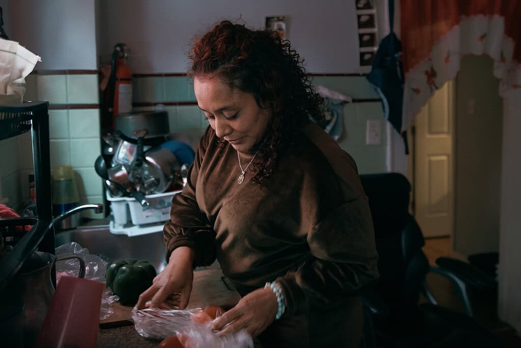 Fanny Núñez prepares food in the kitchen of a home were she rents a room in New Brunswick. Photo by Andres Kudacki for The Jersey Vindicator.
