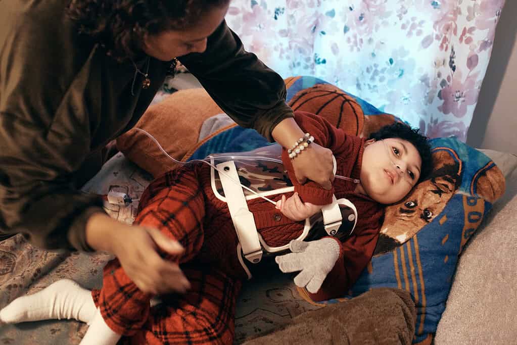 Núñez spent her days stretching her son’s back, monitoring his oxygen, and sleeping lightly, waking at the slightest change in his breathing.