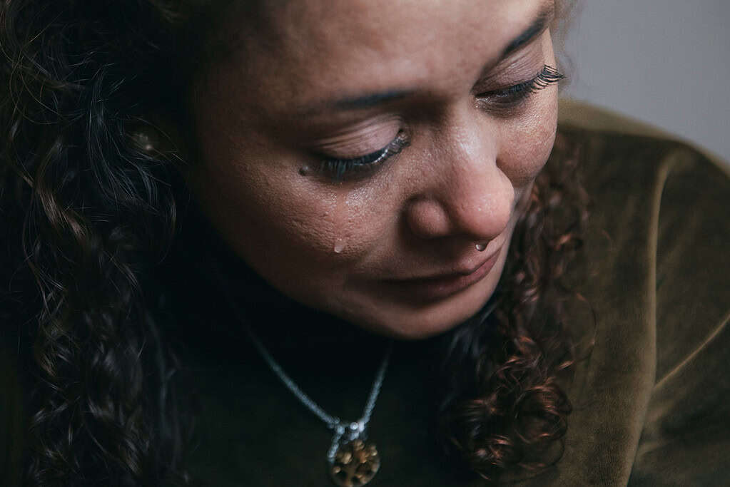 Fanny Núñez cries as her son rests in their room in New Brunswick. Photo by Andres Kudacki for The Jersey Vindicator.