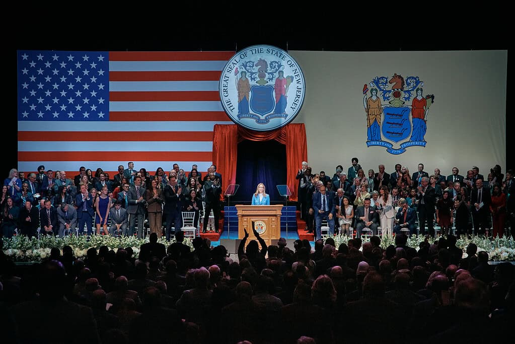 “Today, I take up their work once again,” she said, returning at the end of her remarks to the state motto. “Protecting liberty, ensuring that power is not placed in the hands of a few, but rather that the universal rights of all New Jerseyans are protected. And prosperity, through opening the door to opportunity,” she said. “That is my commitment to you as your 57th Governor.”