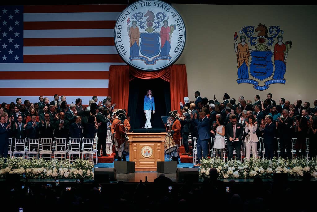 She and Lieutenant Governor Dale Caldwell chose to hold their inauguration in Newark, the state’s largest city, rather than in the capital, Trenton. The last governor elected in New Jersey to be sworn in somewhere other than in the Trenton War Memorial was Christie Todd Whitman.