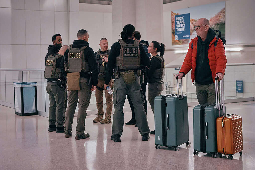 ICE agents on patrol inside Newark Liberty International Airport on March 23, 2026. Photo by Andres Kudacki for The Jersey Vindicator.